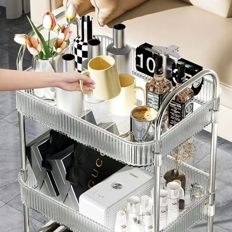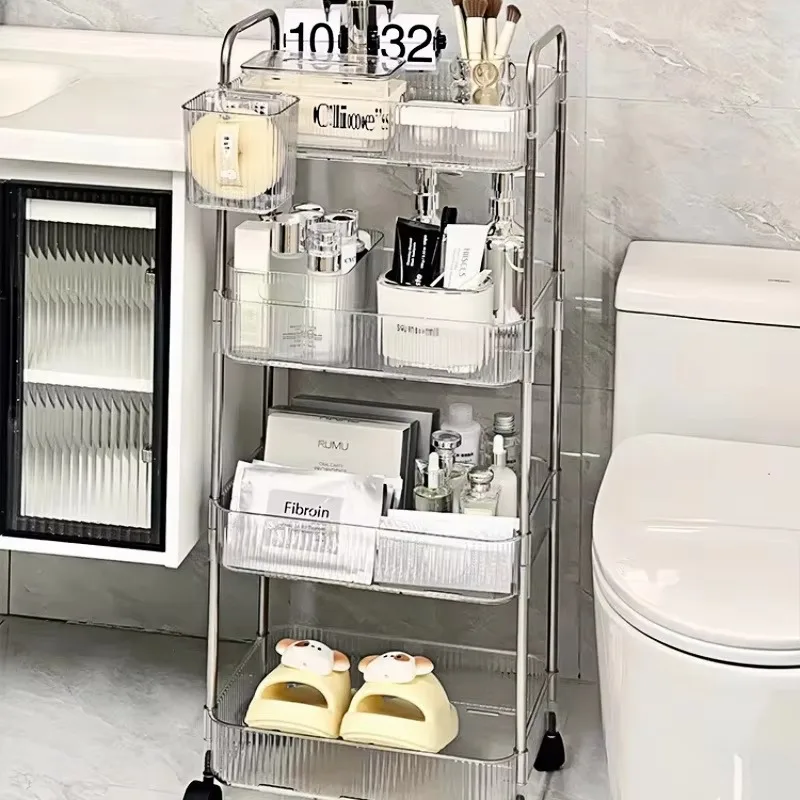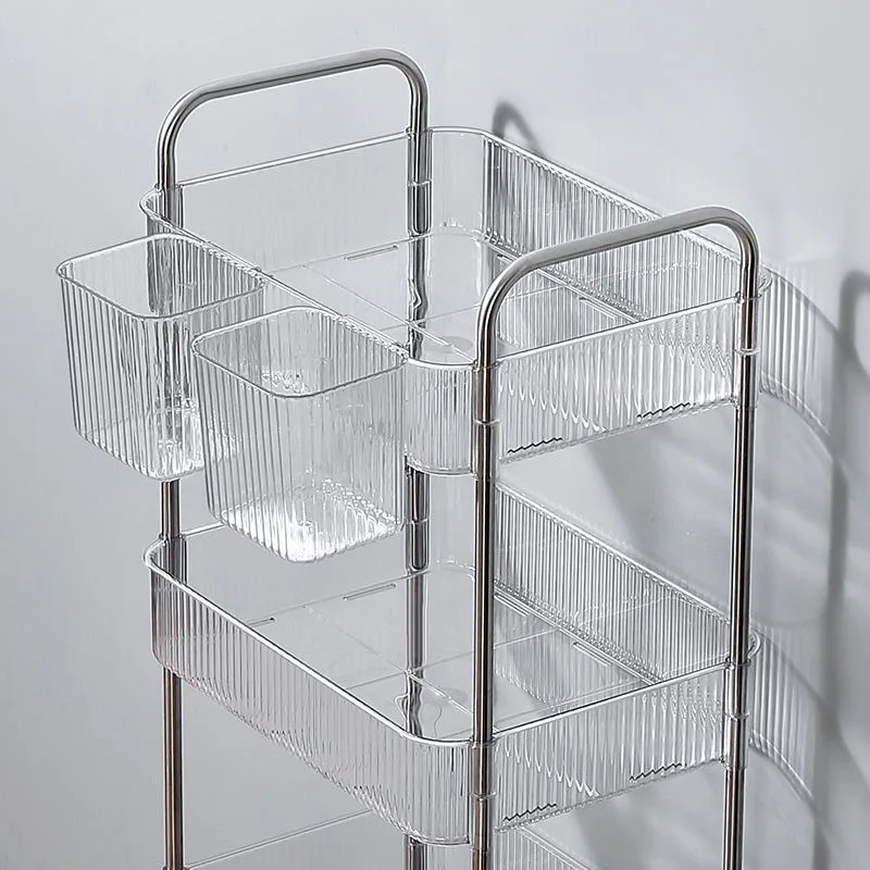 Acrylic Rolling Cart With Hanging Basket Bathroom Storage Makeup Snack Organizer Multi-Layer Transparent Movable Storage Rack