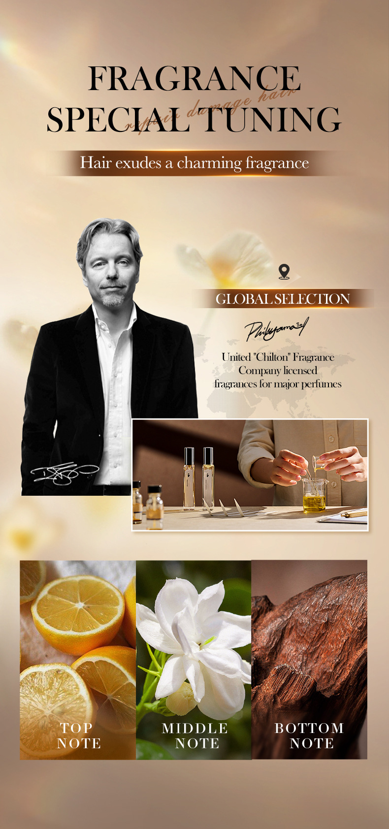 Penetrate the hair core to replenish hair nutrients , repair damaged scales , improve dryness , split ends , frizz other damaged hair caused by blowing , ironing and dyeing strengthening smoothing hair , restoring healthy hair luster
