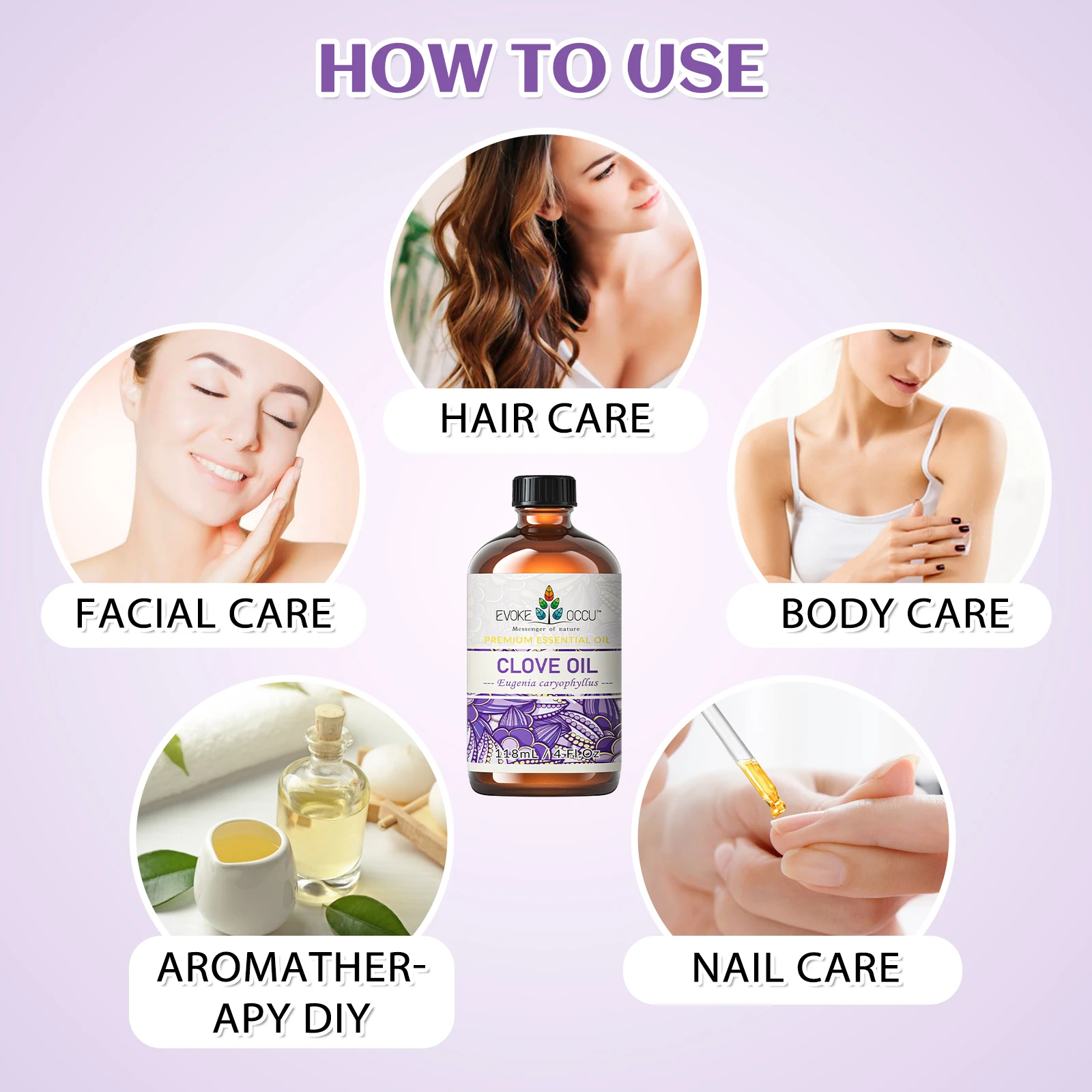 Variety Uses & Applications – Simply add a few drops clove essential oil to your diffuser or humidifier to cleanse and refresh air. For other uses other than aromatherapy we recommend always diluting with a carrier oil.